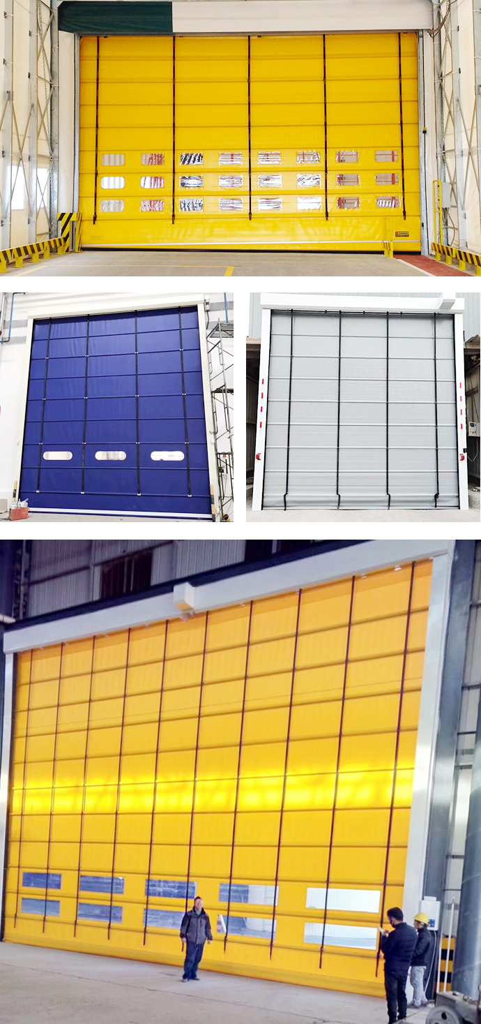 堆積式快速門是快速門當(dāng)中構(gòu)造很簡單的一種門型,堆積式快速門一般的組成部分是由動(dòng)力提升機(jī)頭、簾布、抗風(fēng)桿、立柱、伺服電機(jī)、控制箱這幾部分組成。簾布的材質(zhì)是由1.2mm的單層pvc簾布制成,中間以抗風(fēng)桿加固,其運(yùn)行速度達(dá)到0.8m/s,相對來說構(gòu)造簡單,功能上只能起到防風(fēng)防塵隔離作用。