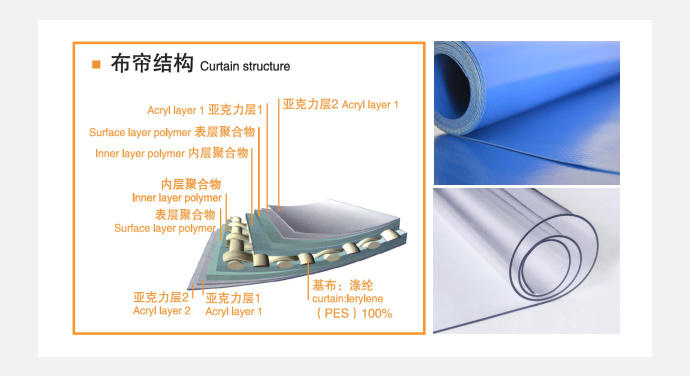 布簾材質(zhì) | 高強(qiáng)度PVC刀刮涂層基布 |
